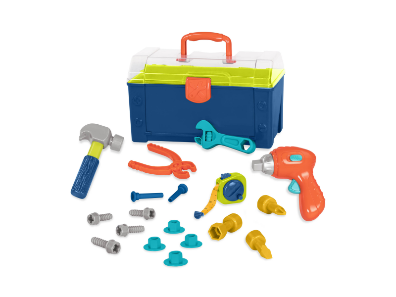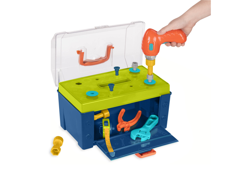 20-dílná sada obsahuje pevný kufřík s držadlem a různorodé nářadí ve velikosti pro malé dětské ručičky. Kufřík s předním otevíráním slouží i jako pracovní stůl.  Součástí sady je ruční vrtačka, která se otáčí stisknutím tlačítka, vydává realistické zvuky vrtání a nevyžaduje žádné baterie! Získáte také plně funkční měřicí pásmo. V kufříku dále najdete podnos na nářadí, kladivo, klíč, kleště, 3 vrtáky, 4 matice, 4 šrouby a 2 hřebíky. Rozměry: 32 x 18 x 18 cm Vhodné pro děti od 3 let.