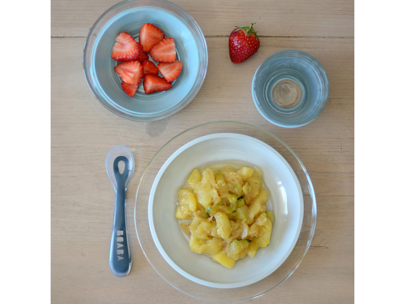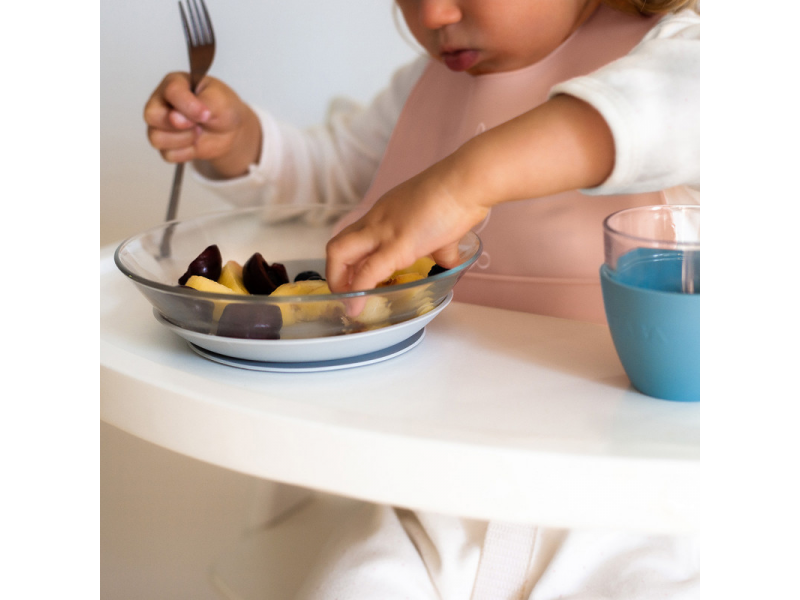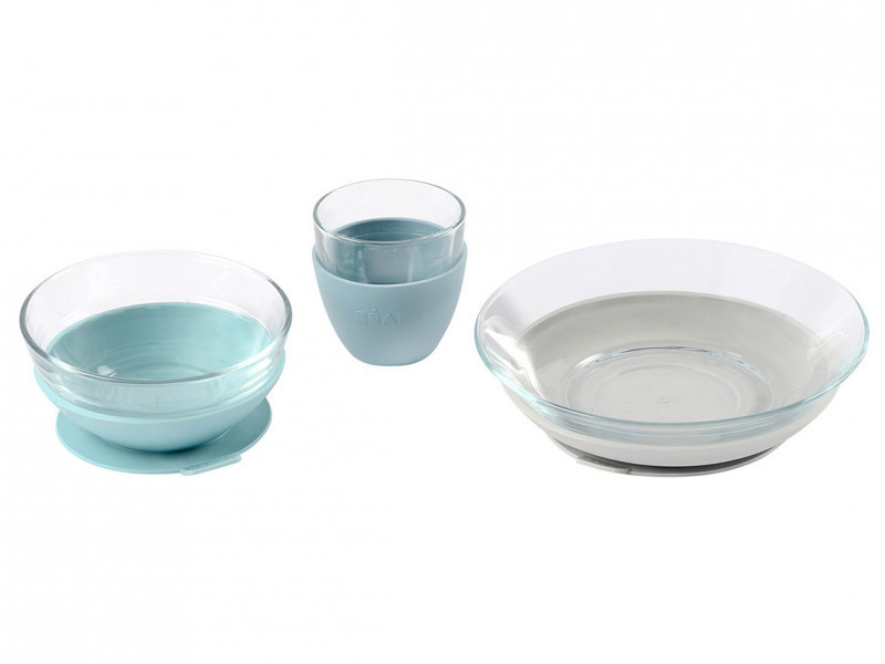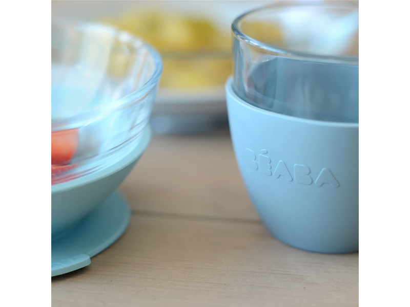 Unikátní sadu nádobí z tvrzeného skla tvoří jídelní miska, talířek a sklenička ergonomického, zaobleného tvaru s hladkými hranami. Miska a talíř jsou doplněny speciálními odnímatelnými podložkami z pružného materiálu s přísavkou, která zajišťuje stabilitu misky či talíře na stole a usnadňuje dítěti stolování. Návlek na skleničku ze stejného materiálu usnadňuje dítěti uchopení skleničky a snižuje riziko jejího vyklouznutí z ruky. Tvrzené sklo je 100% hygienický materiál odolný vůči poškrábání, nárazům a vysokým teplotám. V případě rozbití nedojde k vytvoření ostrých střepů. Sada nádobí je výsledkem spolupráce dvou francouzských značek - Beaba a Duralex. Ikonická značka Duralex je od roku 1945 průkopníkem ve výrobě tvrzeného skla. Nádobí je vyrobeno ve Francii. Nádobí bez odnímatelných podložek lze ohřívat v mikrovlnné troubě i mýt v myčce. Podložky je možné mýt ručně. Rozměry a hmotnost: Talíř: ø 17,5 cm x v 4,3 cm, 337 g Miska: ø 12 cm x v 5,3 cm, 300 ml, 243 g Sklenice: ø 7,1 cm x v 7 cm, 150 ml, 156 g Vhodné pro děti od 4 měsíců.