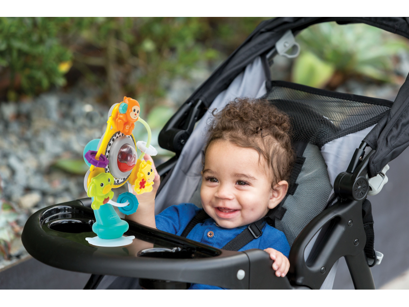 Kolotoč s přísavkou můžete připevnit např. na pultík jídlení žídličky. Kolotoč i jednotlivá zvířátka se dají rukou roztočit. Při roztočení kolotoč i korálky v průhledném míčku chrastí. Hračka podporuje rozvoj smyslů a motoriky dítěte. Vhodné pro děti od 6 měsíců.