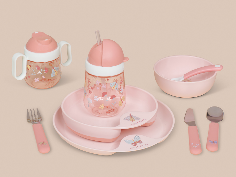 Hrnek s krásným potiskem má pítka na obou stranách, takže dítě může začít pít bez ohledu na to, ze které strany jej uchopí. Krátká pítka jsou doporučována pro zdravý výoj úst a zubů dítěte. Držadla umožňují snadné uchopení dětskými ručičkami. Víčko brání vytečení obsahu hrnku při přenášení. Hrnek je součástí designové kolekce hraček a doplňků pro děti Little Dutch Květiny a motýli. Objem: 200 ml Hrnek je snadné rozebrat a umýt v myčce. Materiál: PP, silikon, Tritan Vhodné pro děti od 6 měsíců.