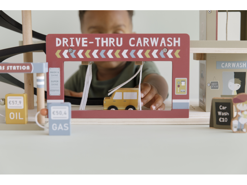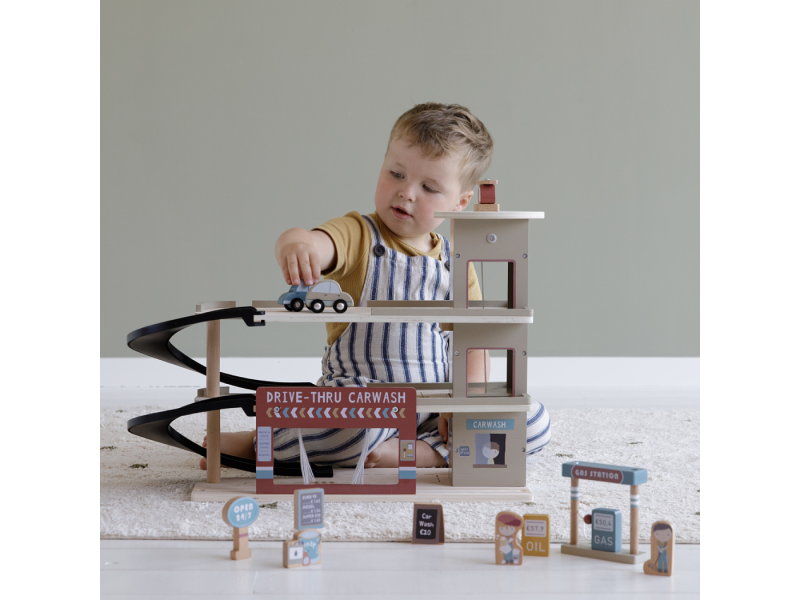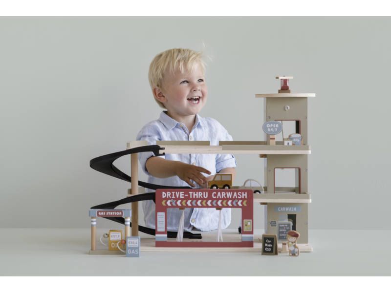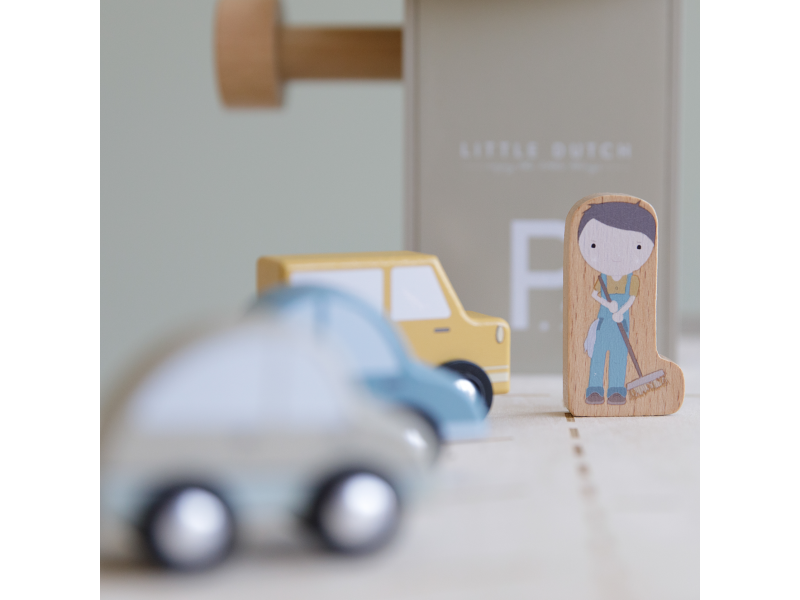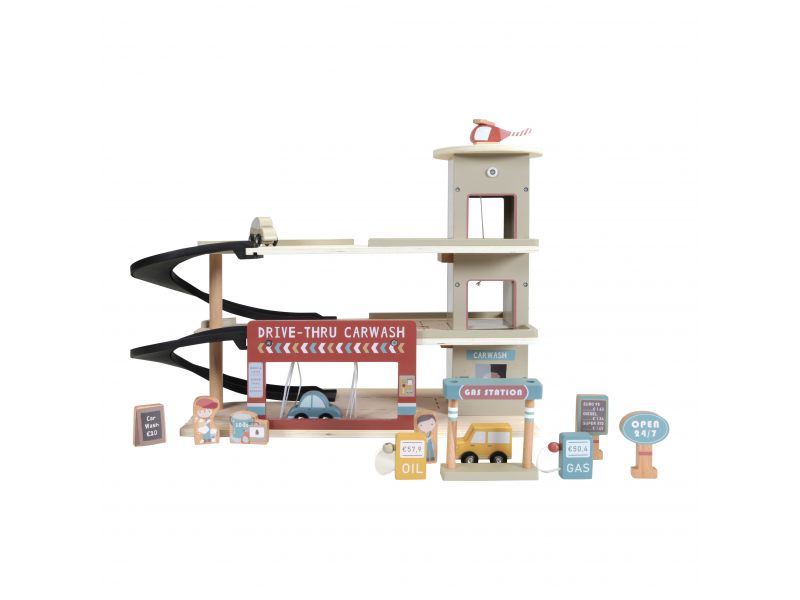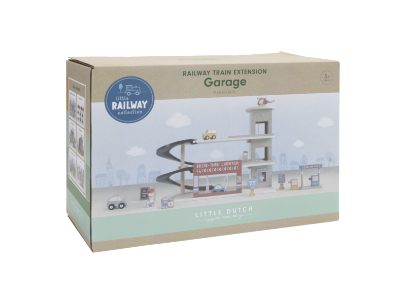 Zastavte se v garáži, abyste natankovali benzín, zaparkovali auto nebo jej nechali vyčistit v myčce. Dřevěná garáž je jednou z mnoha herních sad, které lze připojit k dřevěné Little Dutch Vláčkodráze XXL. Garáž má přistávací plochu pro vrtulník. Dřevěné figurky jsou krásně ilustrovány po obou stranách a je možné je umístit do vagonů. Dřevěné kolejnice nejsou součástí setu. 14-dílná sada obsahuje garáž s myčkou, auta, vrtulník, čerpací stanici, pumpy, značky a figurky zaměstnanců. Rozměry: 45 x 23,5 x 38 cm Vyrobeno z udržitelného dřeva s certifikátem FSC. Vhodné pro děti od 3 let.